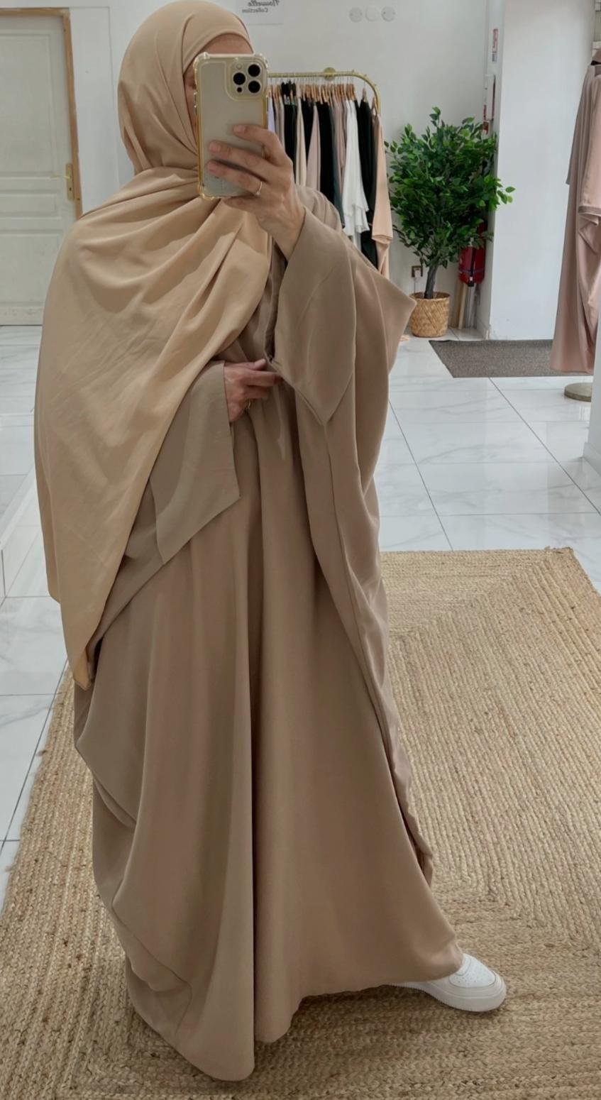 • Modest & Stylish:** Long dress with an asymmetrical cape offering full coverage.